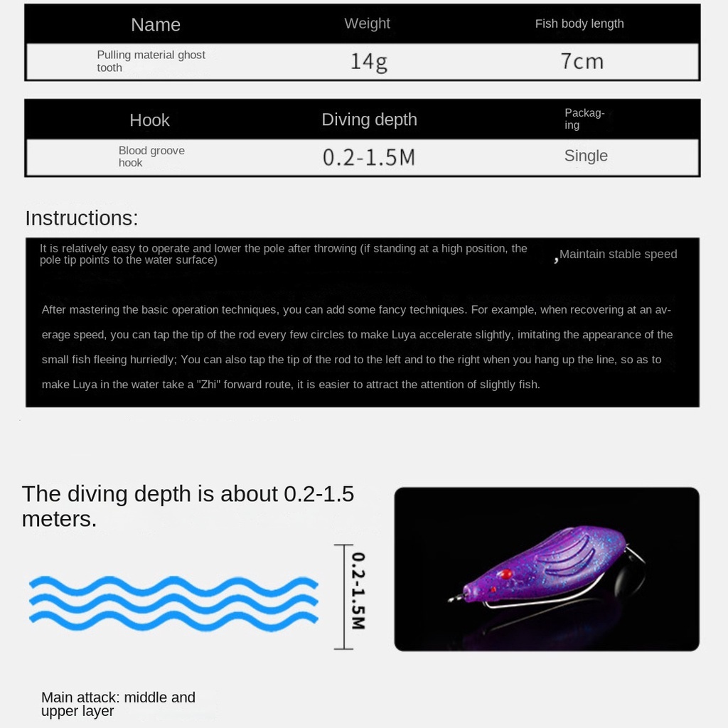 1. Umpan pancing ini dapat tenggelam perlahan 0,2m-1,5m dan bergerak fleksibel dalam air.