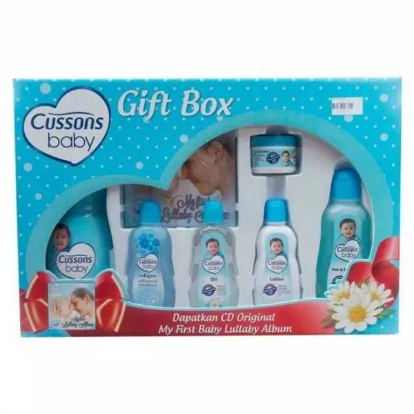 Cussons Baby Gift Box + Telon merupakan paket perlengkapan bayi yang istimewa untuk kebutuhan sehari-hari. Dikemas dengan box cantik , membuat Cussons Baby Gift Box sangat cocok untuk dijadikan hadiah. Cussons Baby Gift Box ini terdiri dari : - Cussons Baby Cream 50 gr - Cussons Baby Cologne 100 ml - Cussons Baby Milk Bath 200 ml - Cussons Baby Oil 100 ml - Cussons Baby Powder 200 gr - Cussons Baby Lotion 100 ml - Mainan