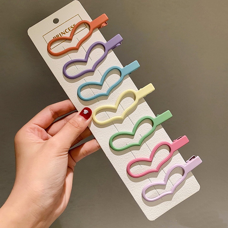 Detail 7pcs/set Jepit Rambut Bentuk Persegi Hati Warna-Warni Untuk Anak Perempuan