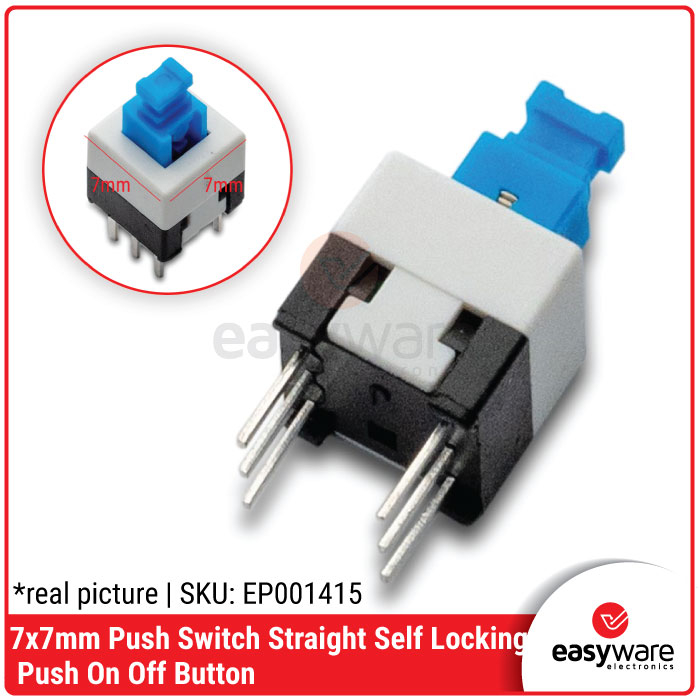 - 1x 7x7mm Push Switch Straight Self Locking / Push On Off Button