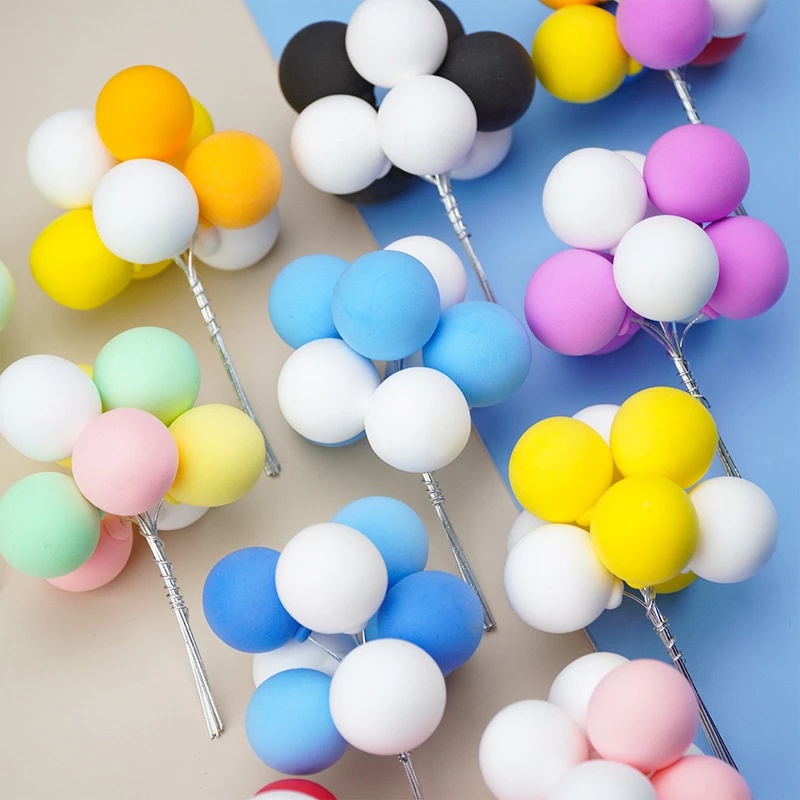 Kategori: dekorasi kue Bahan: tanah liat ultra-ringan, kawat Pemodelan: balon Warna: abu-abu dan putih, merah dan merah muda dan putih, biru tua dan biru muda dan putih muda, warna terang macaroon, biru dan putih, pink dan putih, ungu dan putih Ukuran: panjang bundel bola sekitar 10 cm, lebar sekitar 6.5 cm, diameter bola sekitar 2.5 cm Acara: pernikahan dan pertunangan, ulang tahun, festival, ulang tahun, wisuda, pesta, dll. Jumlah: 8 pcs/bunch