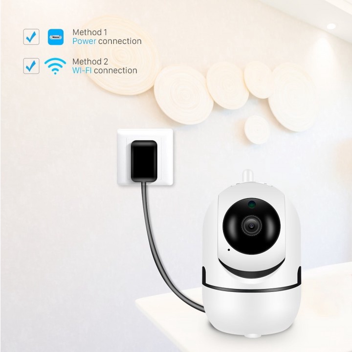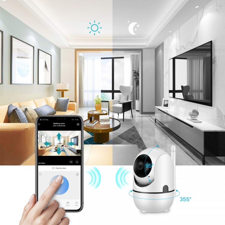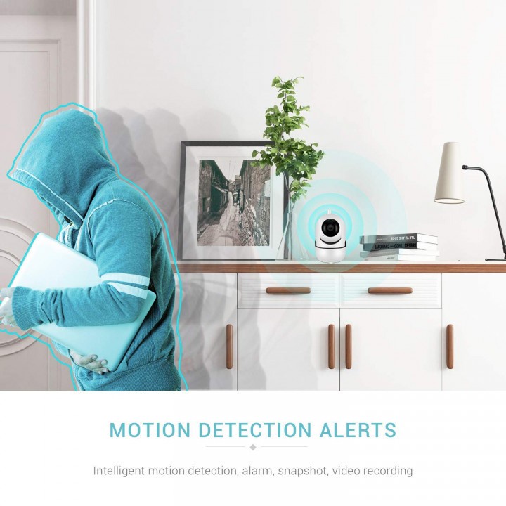 Main Features - Motion Detection & Alert Notification - Smooth Pan and Tilt Monitoring - Optional 720P/1080P - Clear Two-Way Audio - Day and Night Monitoring - TF Card Local Storage + Cloud Storage - Real Plug & Play - P2P Remote Access - Easy Setup & Quick Installation
