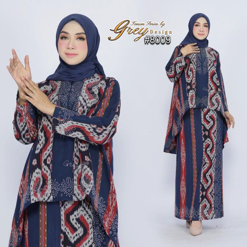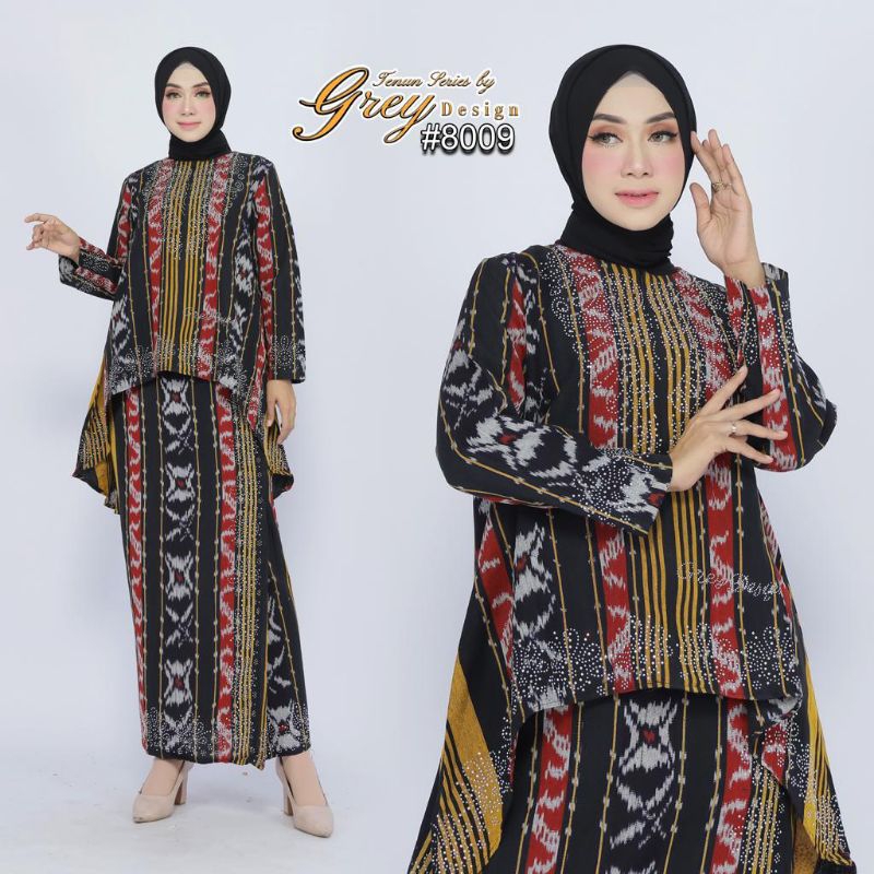 Tenun 100% original grey design. Setelan Full Tenun Payet dengan ukuran all size, fit to XL, bahan jatuh mengikuti badan.