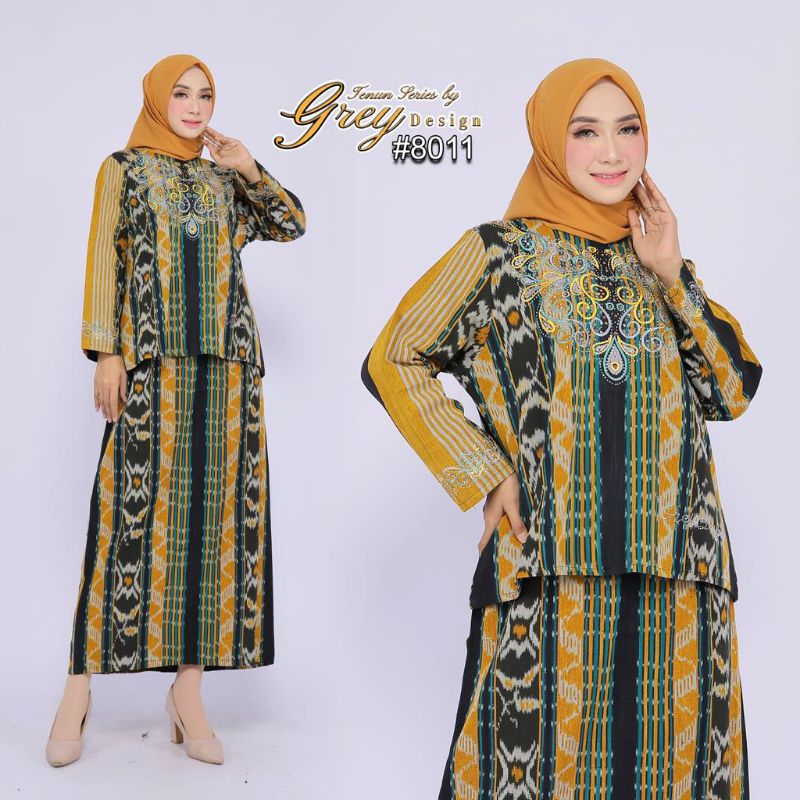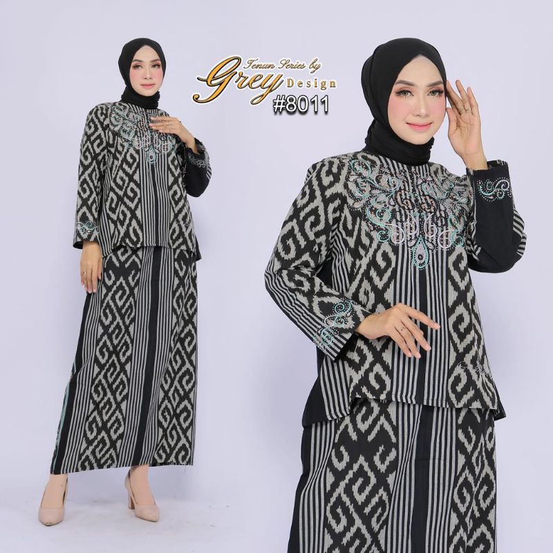 Tenun 100% original grey design. Setelan Full Tenun Payet dengan ukuran all size, fit to XL, bahan jatuh mengikuti badan.