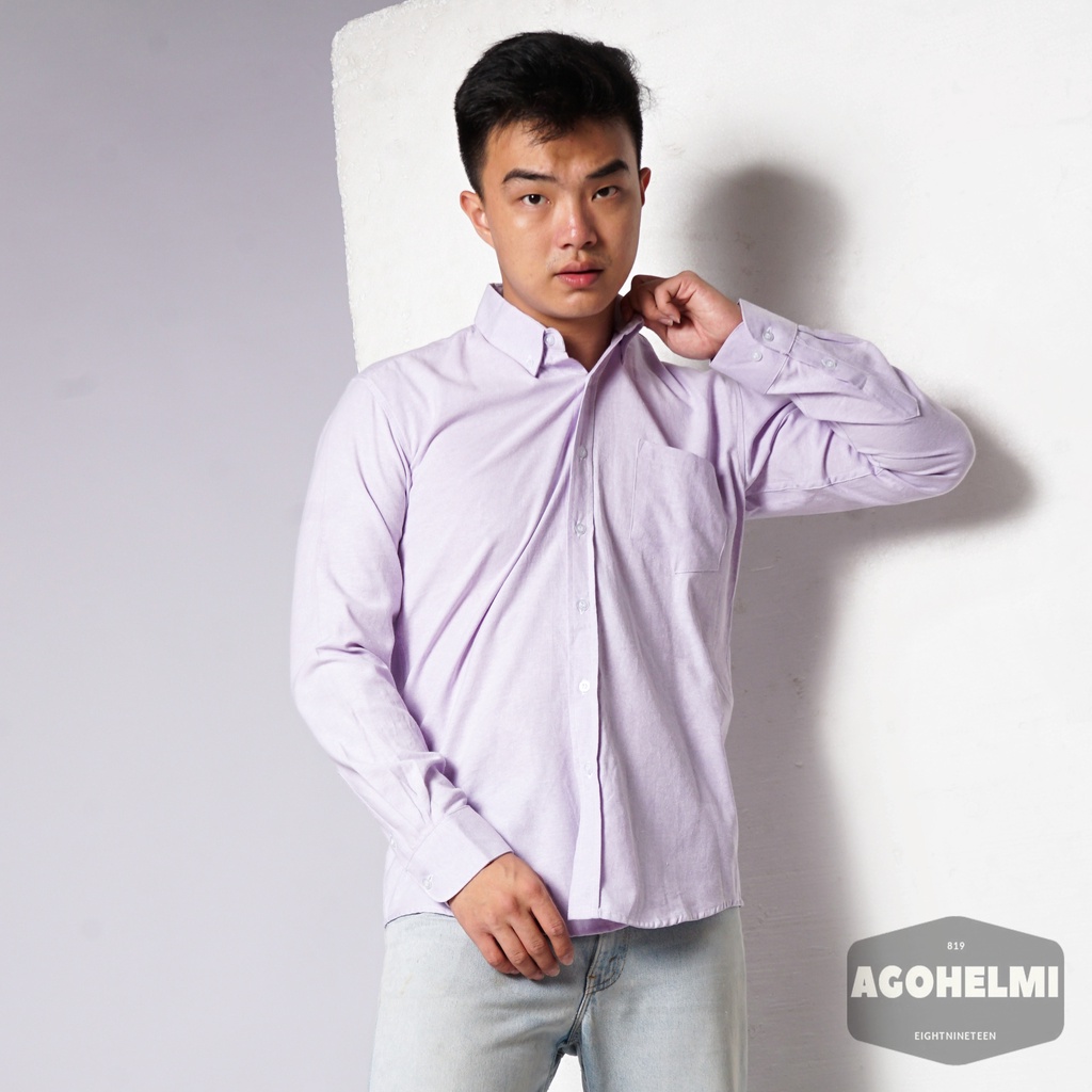 Detail 819 Kemeja Pria Lengan Panjang Polos Lilac Ungu Muda Soft Purple Lylac Purple Oxford Basic SIMPLE Slimfit Casual Tersedia Ready Sampai Size JUMBO BIG SIZE XXL XXXL