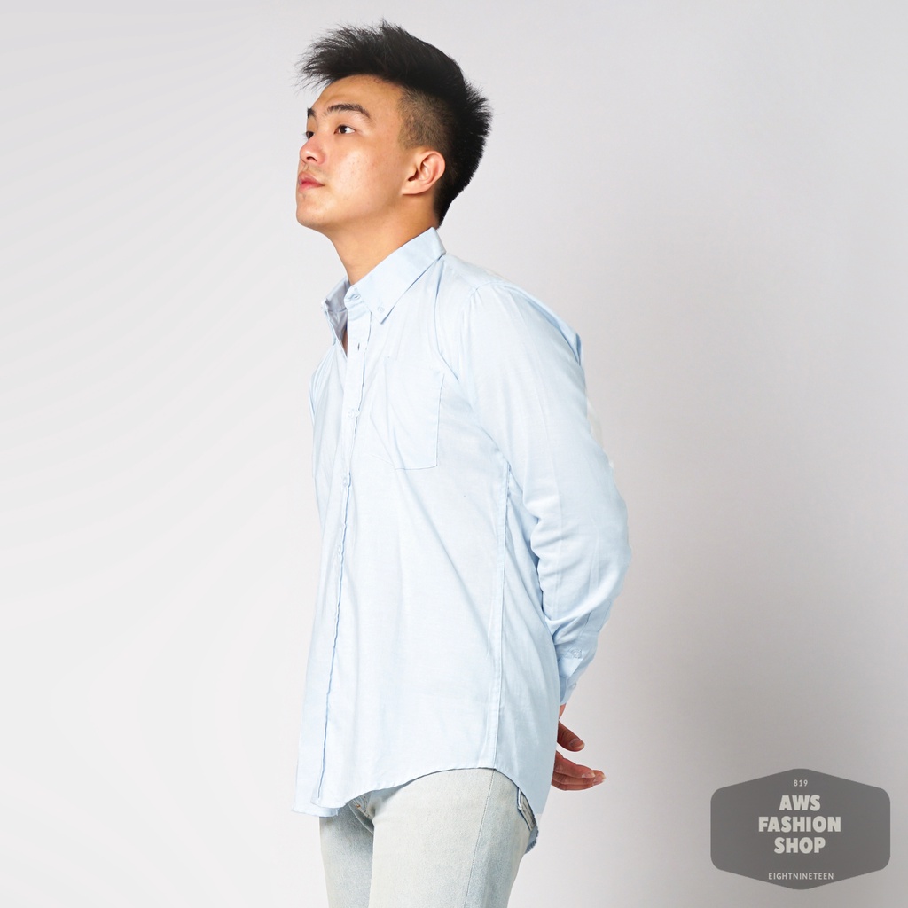 Detail 819 Kemeja Pria Lengan Panjang Polos Baby Blue Biru Soft Oxford Basic SIMPLE Slimfit Casual Tersedia Ready Sampai Size JUMBO BIG SIZE XXL XXXL
