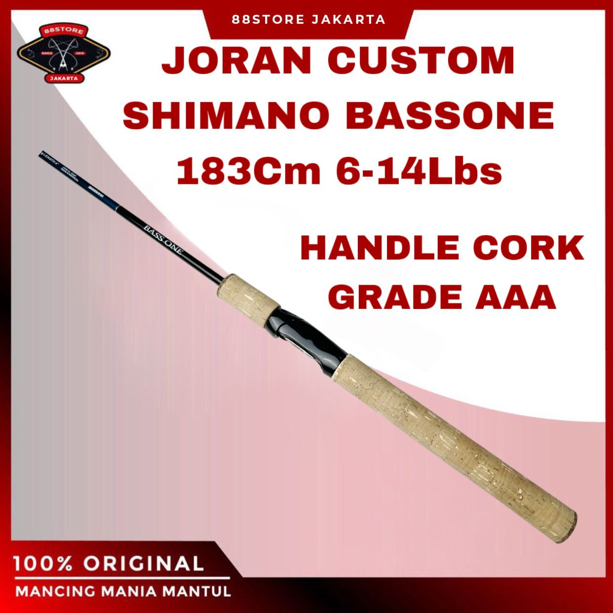 joran custom shimano bassone line 6-14lbs length 183cm max drag 7kg ring full fuji cork grade AAA rubber cork premium reelseat c14+ warna midnight blue ( seperti asli)
