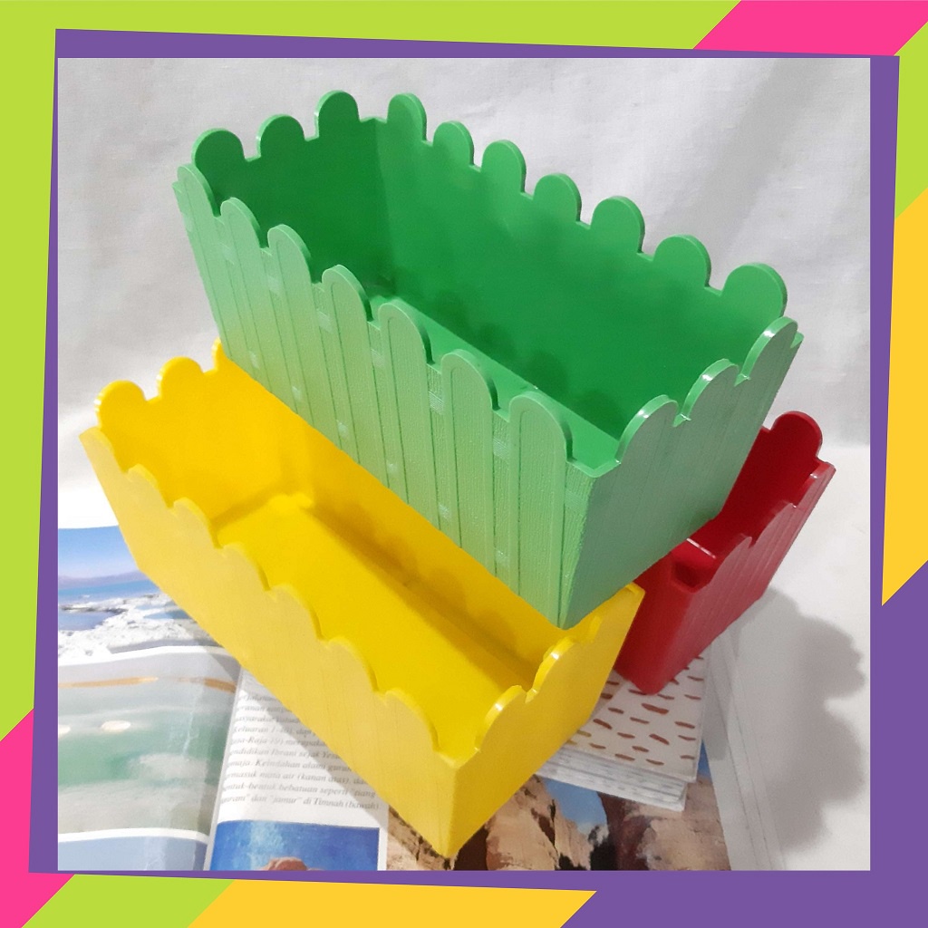 Dekripsi Produk : Ukuran atas P X L = 19,5 cm x 9,5 cm Ukuran Bawah P X L = 18,5 cm x 8 cm Ukuran tinggi pot : 8,5 cm
