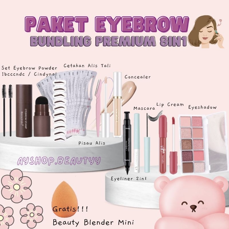 Detail (8in1) Paket Hemat Eyebrow Stamp Bundling Premium 8in1 Cetakan Alis Tali Eyebrow Powder Ibcccndc READY STOK (SIAP KIRIM)