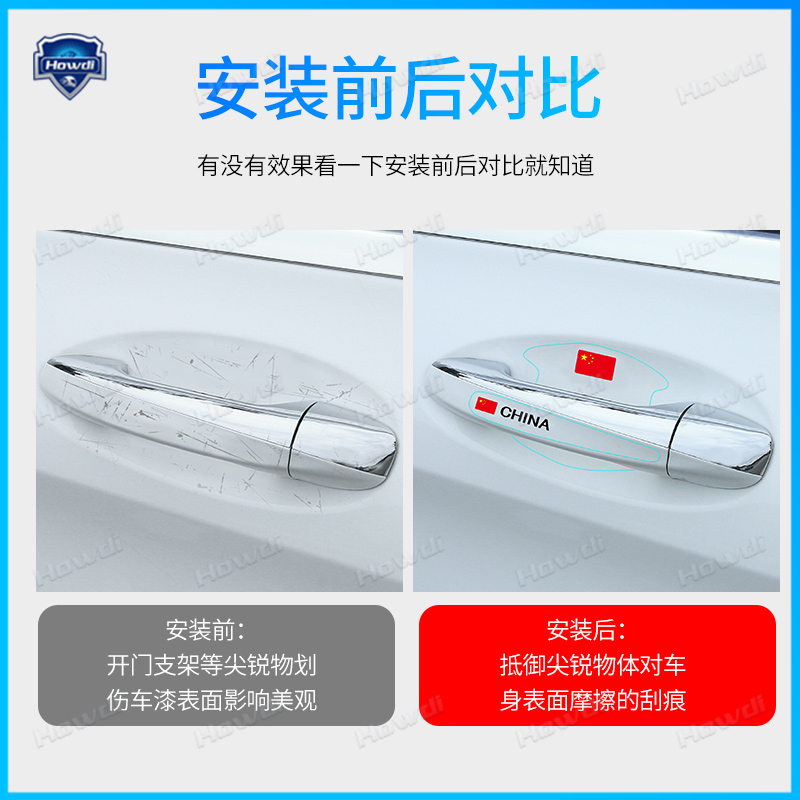 Terbuat dari serat karbon, kualitas tinggi, viskositas tinggi, ketahanan aus yang kuat. Melindungi pegangan pintu dari goresan dan goresan. Ketangguhan yang baik dan ketahanan gores yang kuat. Setiap kali pintu dibuka dan ditutup, tidak akan membawa kerusakan kecil pada pegangan pintu. Jauhkan cat di sekitar pegangan pintu dari goresan dengan bantuan film pelindung berkualitas tinggi. Cocok untuk semua jenis mobil. Mudah dipasang: Cukup kupas dan perbaiki pada permukaan yang bersih dan kering, jangan lilin atau minyak.