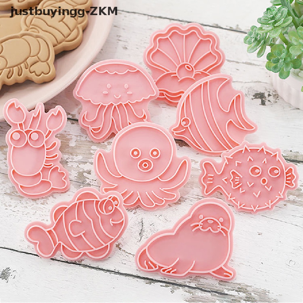 Detail 8pcs / Set Cetakan Pemotong Kue Biskuit Model Kartun Hewan Laut 3D Dapat Ditekan Untuk Alat Dapur