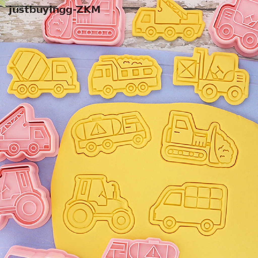 Detail 8pcs / set Cetakan Pemotong Kue / Biskuit Bentuk Kartun Kendaraan 3D Untuk Alat Baking
