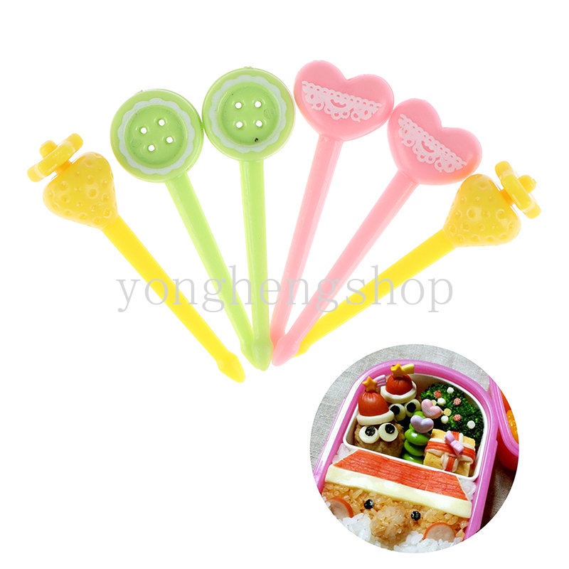 Bahan: Plastik PP Ukuran: Sekitar 60MM Warna: Warna Campuran Gaya: Hati/Ikatan Simpul/Pepper/Tombol Paket: 8 pcs/Set Garpu Camilan Bentuk Kartun