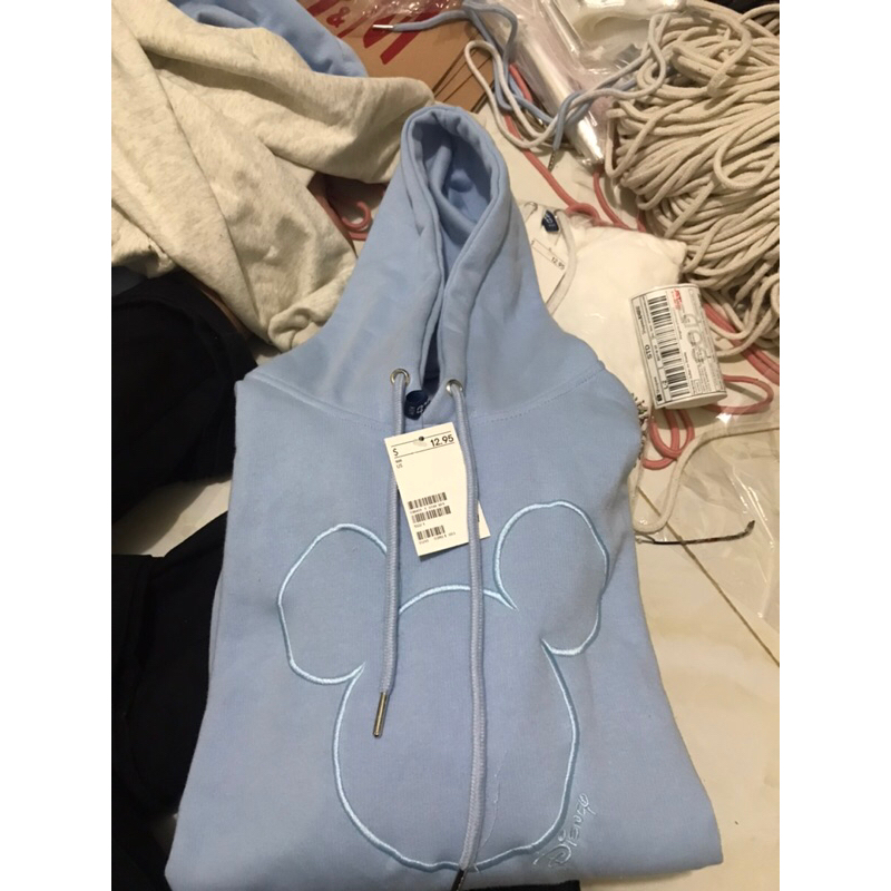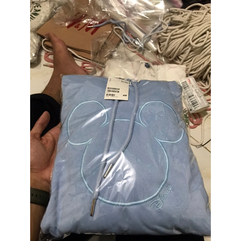 Detail (9.9) Hoodie H&M Mickey Disney Light Blue Bordir Unisex HnM Pria Wanita Full Tag