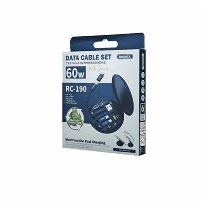 Remax Wanbo Cable Set Multifunction 60W Fast Charging RC-190 Original Garansi Resmi / Kabel Set / Kabel Micro / Kabel USB / Kabel iPhone / Kabel Lightning / Kabel Type-C / Kabel Multifungsi / Organizer Kabel / Organizer Kartu SD Card