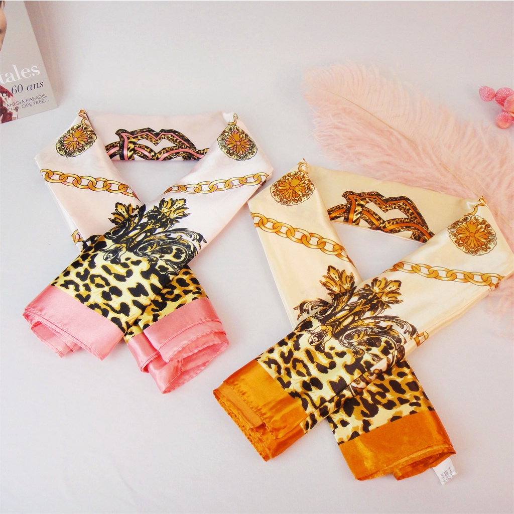 Detail 90Cm Syal Persegi Besar Wanita Sederhana Temperamen Bergaris Syal Sutra Selendang All-Match Versi Korea Serbaguna Syal Sutra Imitasi