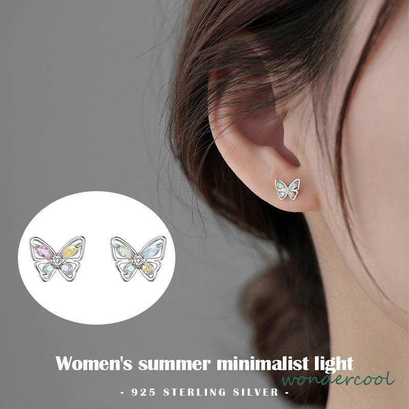 🌈Selamat datang di "wondercool"! ❤Best service ❤jaminan kualitas 100% ❤Selamat berbelanja, kepuasan Anda adalah pengejaran kami! 925 Anting Kupu-kupu Perak Sterling Perempuan Musim Panas Sederhana Anting Desain Niche Mewah Ringan