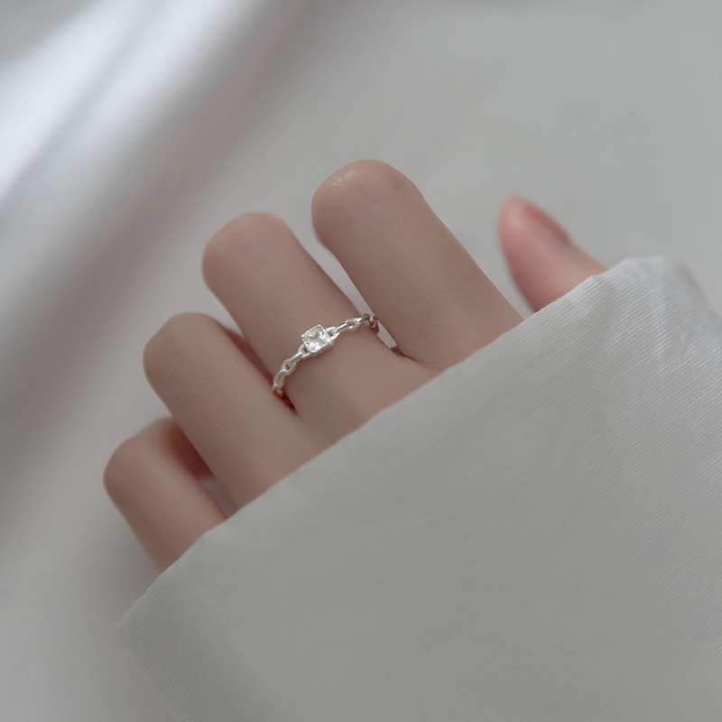 Aksesoris Fashion > Cincin > 925 Perak Persegi Berlian Cincin Disesuaikan Kristal Zirkon Cincin Sederhana Wanita Manis Aksesoris Hadiah