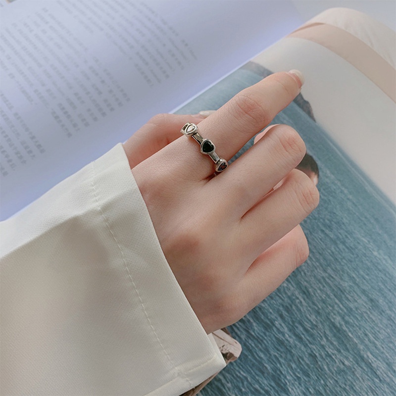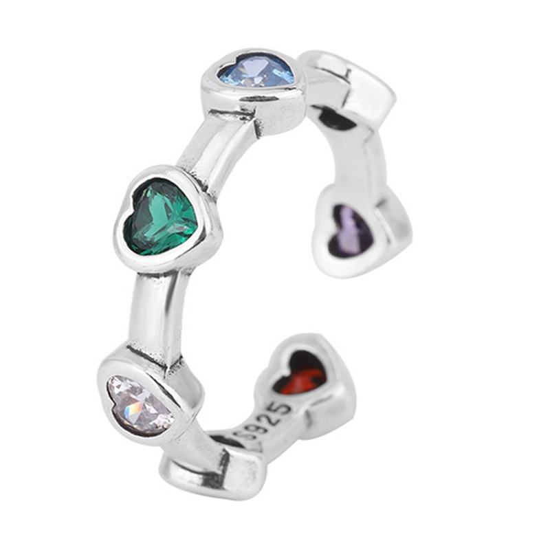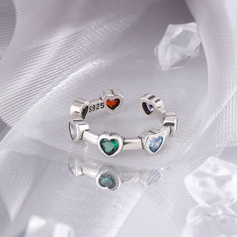 Detail 925cincin Sterling Silver Hati Untuk Wanita Hijau Merah Batu Sederhana Trendi Retro Anillos Pesta Hadiah Aksesoris
