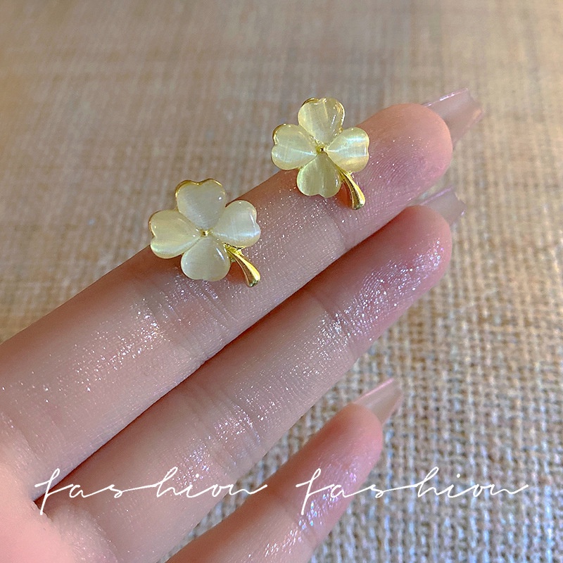 925 Jarum Perak Korea Opal Empat Daun Anting Bunga Anting-Anting Fashion Sederhana Anting-Anting
