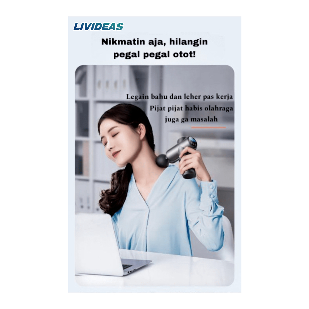 ā MassageR GUN adalah solusinya! Dengan 6 kepala berbedanya, siap menembak dan melemeskan segala otot dan urat kaku Anda! enaknya bebas dari otot pegal