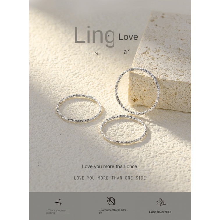 Aksesoris Fashion > Cincin > 999 Sterling Perak Berkilau Gypsophila Cincin Perempuan Fashion ins Gaya Polos Cincin Jari Telunjuk Cincin Tertutup Berlian Ekor Cincin Trendi