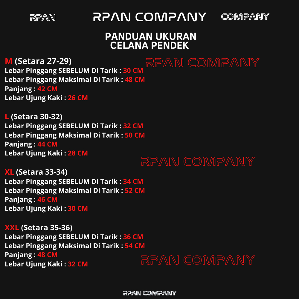 Spesifikasi Produk ✔️Merk : RPAN.CO ✔️Bahan : TASLAN JN.(PARASUT) ✔️Ukuran : M-XXL. ✔️ Model : CELANA PENDEK. ✔️Model Cuttingan : LURUS. ✔️ Jahitan Rapi & Presisi. ✔️ Barang berkualitas asli Original cuma disini. ✔️ Harga = Kualitas.
