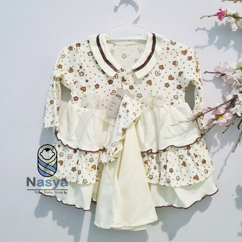[A-023] Dress Bayi / Setalan baju bayi perempuan cream + jilbab
