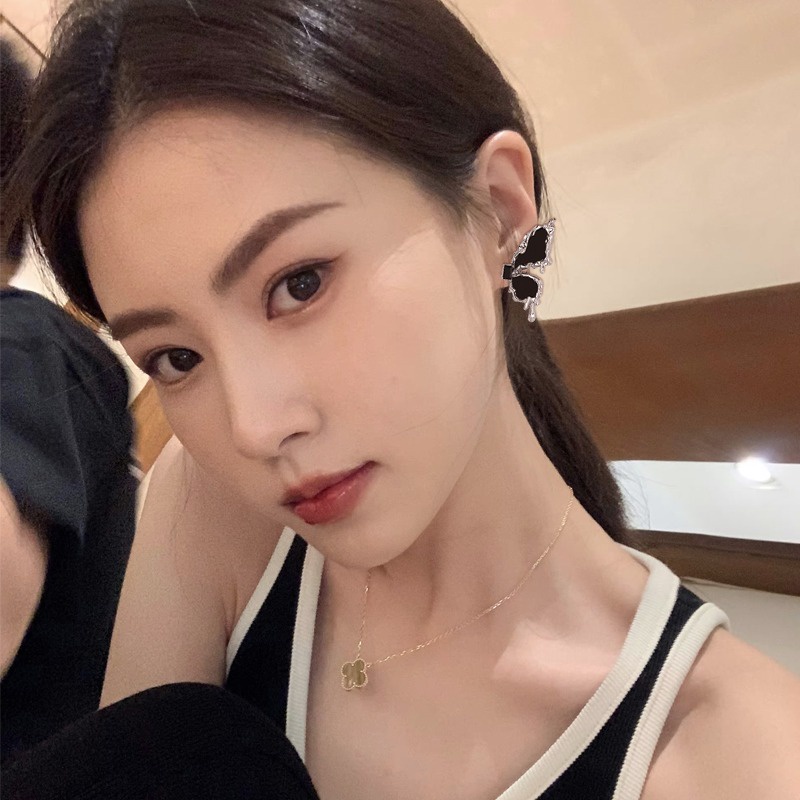 Detail A HELLO GIRL Kupu Hitam Asimetris Wanita Keren Dan Tampan925 Perak Korea Tidak Teratur Anting Romantis