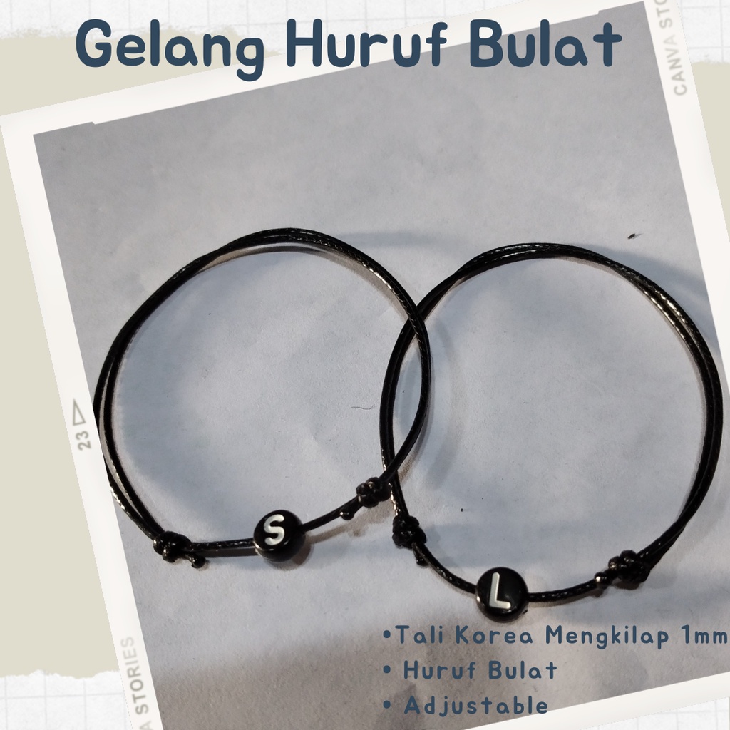 Gelang inisial couple Gelang tali Charm bulat Tali 1mm Waterproof