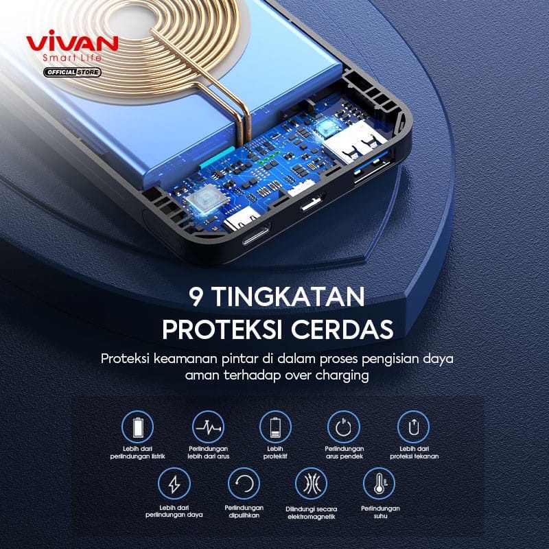 Detail A_ VIVAN Powerbank VPB-W11 10000 mAh Power bank Wireless 3 Output Fast Charging 18W QC3.0 PD Support iPhone 13