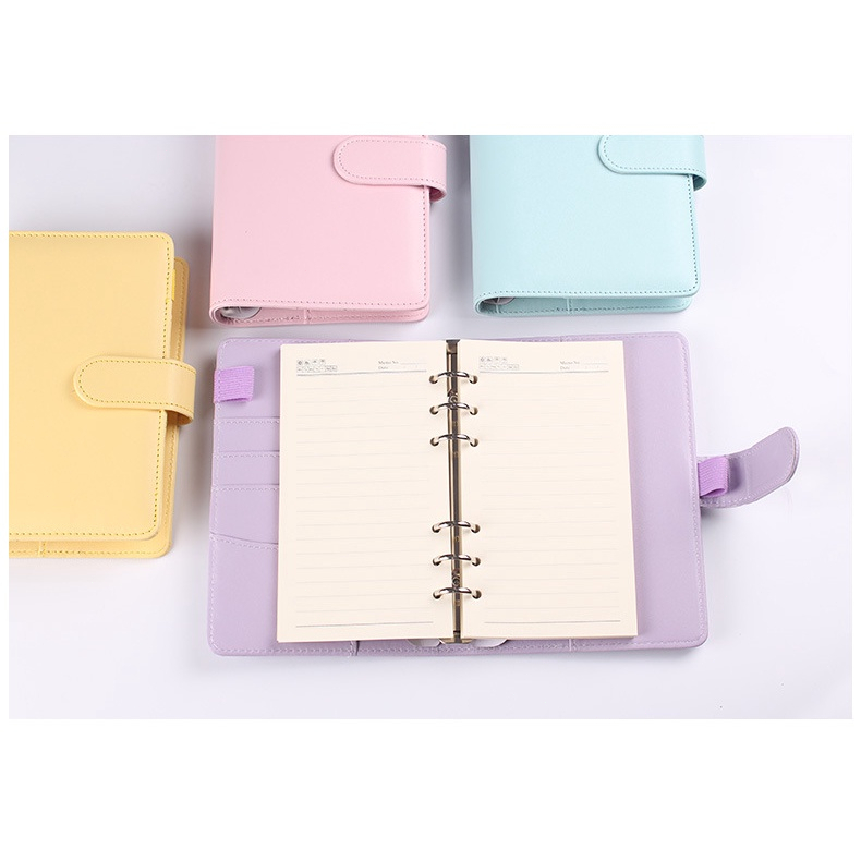 Fitur-fitur notebook: 100% baru dan berkualitas tinggi -Bahan: kulit imitasi -Ukuran A6: 18,7 * 13 cm -Warna: kuning, merah muda, ungu, biru Bahan: kertas Kertas Jumlah halaman: 1 halaman: 50 Ukuran 1 40 * 60mm