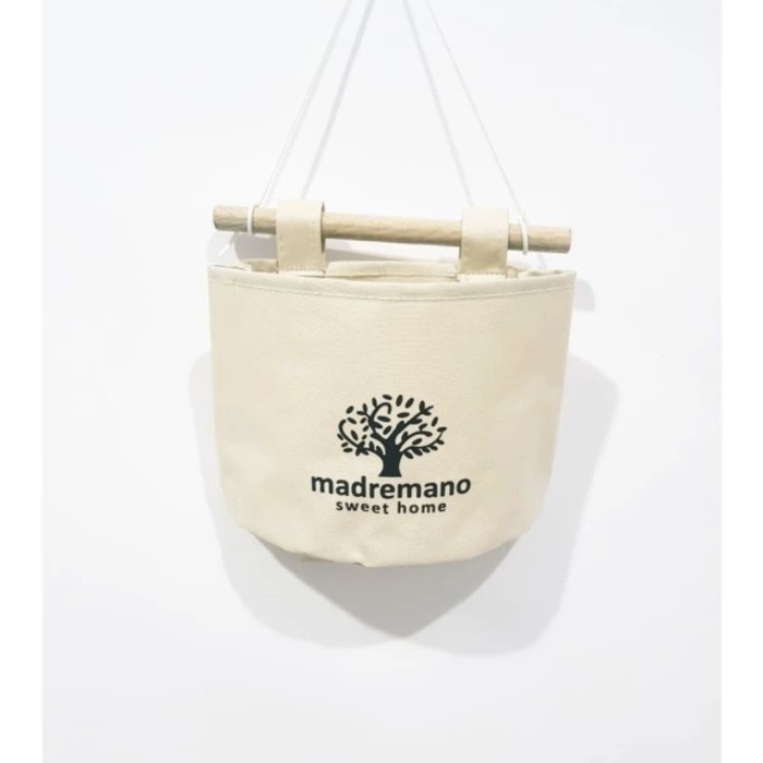 Dilengkapi tali dan kayu, bisa digantung di tembok ruang tamu, kamar tidur atau di belakang pintu. Ada hiasan pita cantik di bagian atas pouch, unik loh...