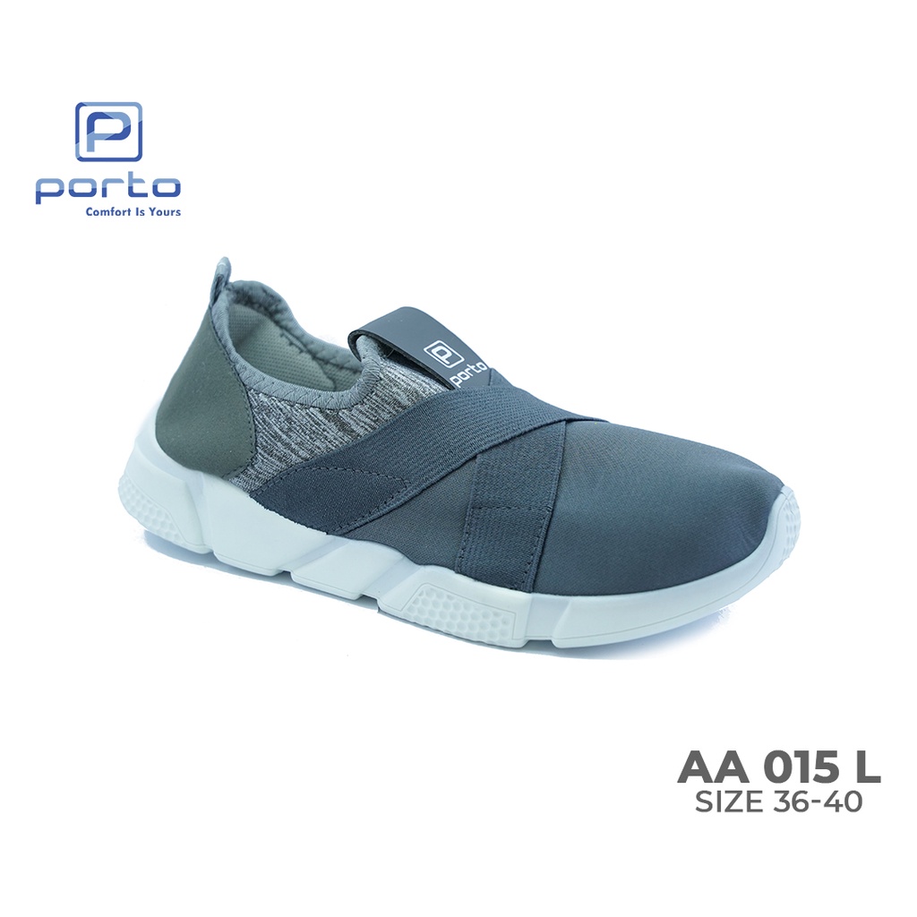 Detail AA015L - Porto Leveling Sepatu Sneakers Wanita Size 36 - 40 Hitam Abu Simple Casual Nyaman Terbaru Original