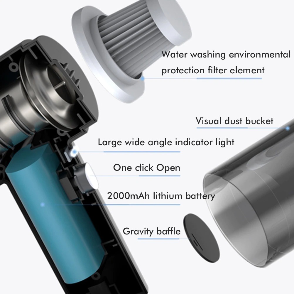 Fitur Nirkabel dan Nyaman Digenggam Penyedot debu ini memiliki bentuk yang sangat kecil dan sangat nyaman untuk digenggam. Penyedot debu ini menggunakan daya baterai sehingga Anda dapat leluasa saat melakukan pembersihan.