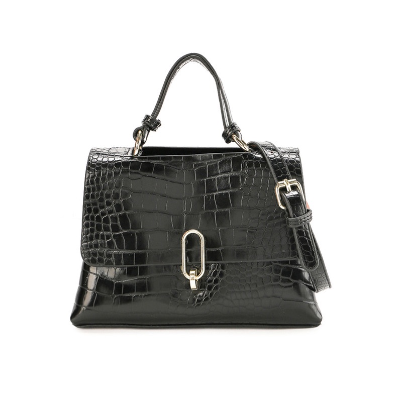 - Mini sling bag desain croco skin panel untuk vintage parisian look - Material PU leather - Kompartemen utama dengan twist lock fastening - Desain open flap - Top handle - Detachable, adjustable strap