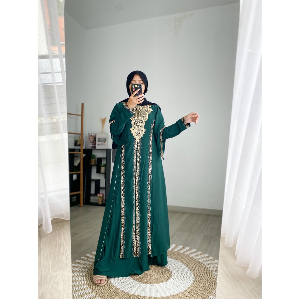 ABAYA CLARISA - Gamis Abaya Arab Tukey Hawa Dubai Aplikasi bordir dan mote swarowsky karakteristik melar Aplikasi bordir ori - Bahan : Jersey mix ceruty bordir + payet (RESLETING) Detail ukuran :