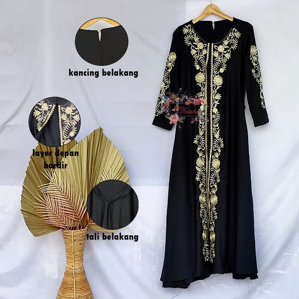 Detail Abaya Hitam Navy Gamis Arab Turkey Layer Bordir Dress Arab Gamis Maxi Dress Free Pashmina Bahan Balotelli Full Bordir