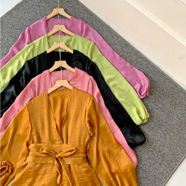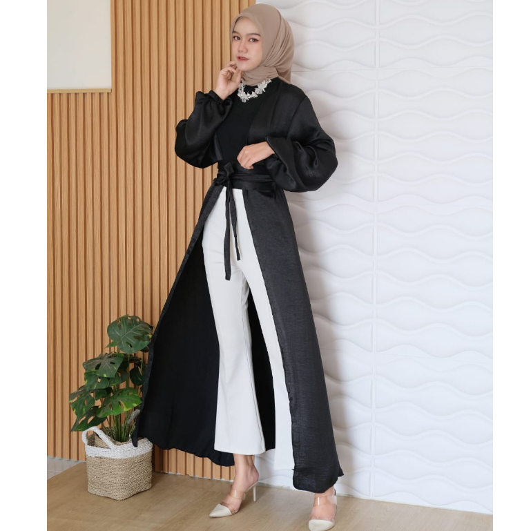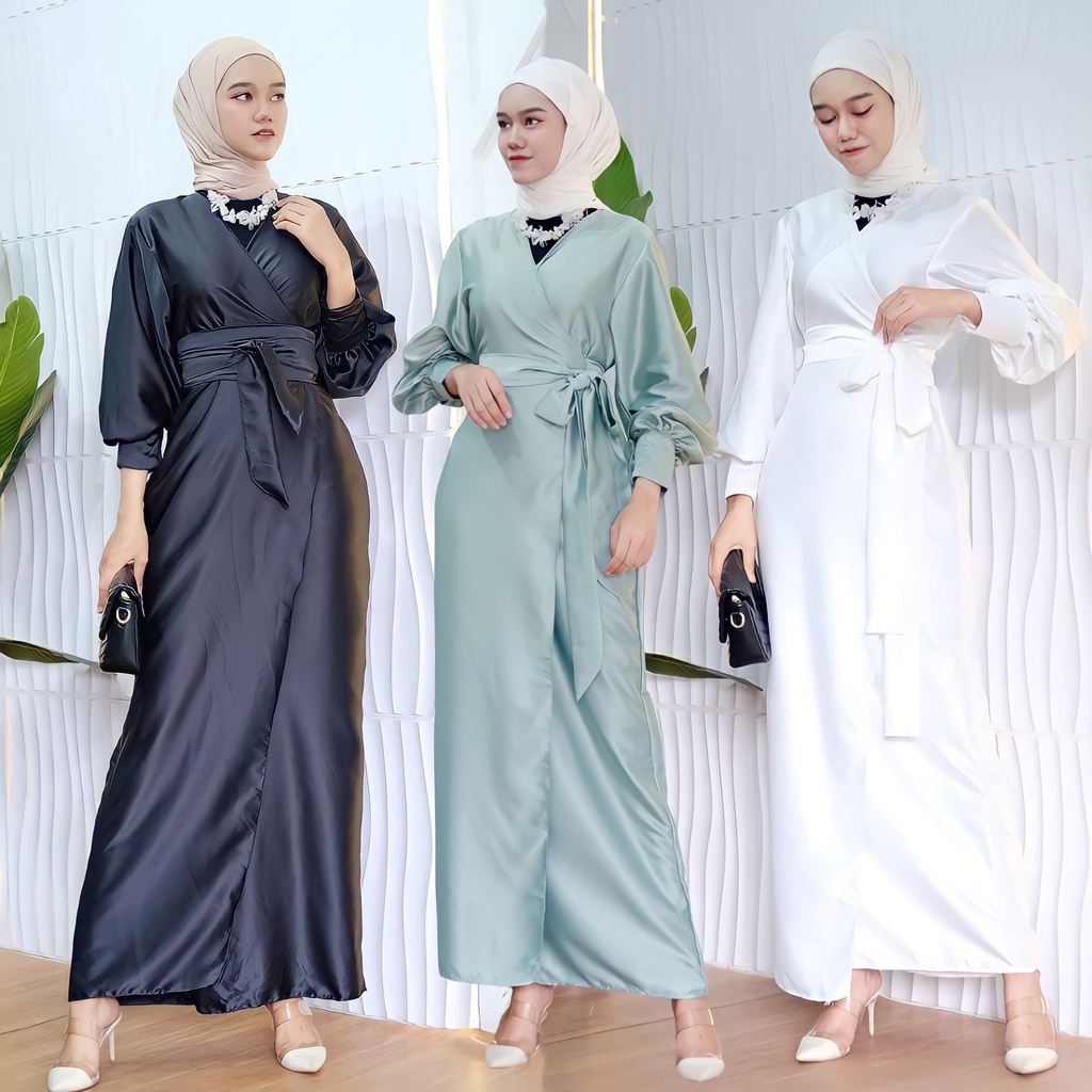 Detail Abaya Outer Shimmer Premium Silk Santorini Andini Dress Outer Silk Satin Tali - Dress Satin Premium - Outer Tali Size Jumbo Abaya Outer Silk Santorini Shimmer Premium - Long Outer Silk Satin Tali - Dress Outer Silk