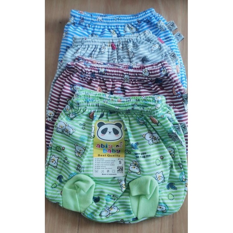 ABY BABY Best Quality : - Anti alergi - Aman dan nyaman di kulit - Tidak menimbulkan gatal - Halus dan lembut dipakai - Tidak berbulu - Tidak melar jika di cuci - Bahan 100% katun kaos - Gambar PRINT ASLI , bukan sablon . - Karet sangat nyaman di pakai , tidak membekas di kulit bayi . - Motif RANDOM ( berubah - ubah , tdk selalu sama dengan gambar ) - SNI .