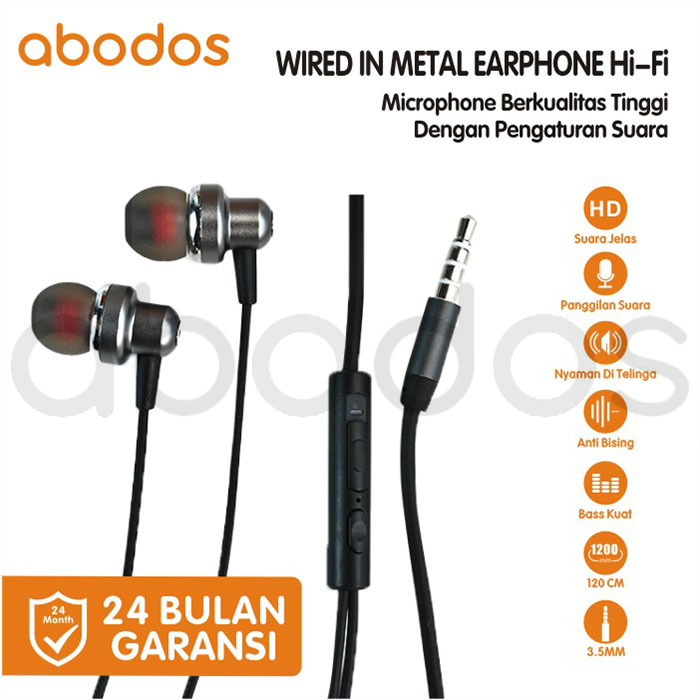 1x Abodos Earphone Hi-Fi Handset Logam Type 3.5 mm