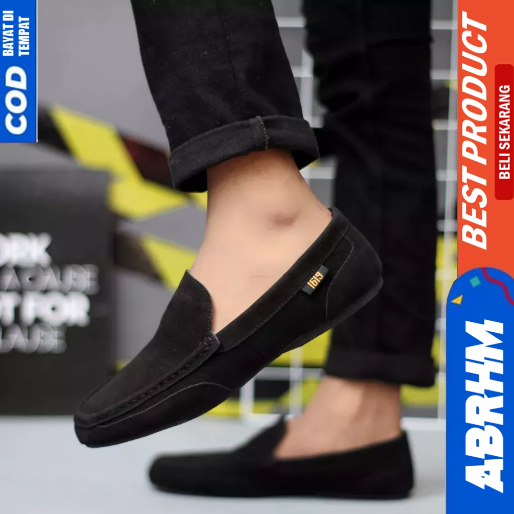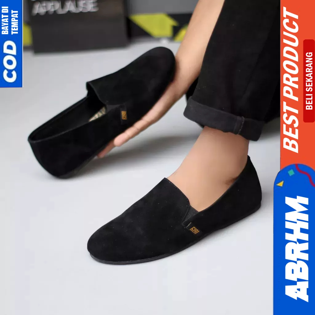 Detail ABRHM Sepatu Slip On Casual Hitam Slop Pria