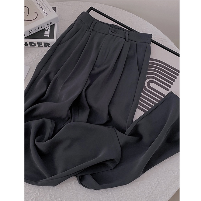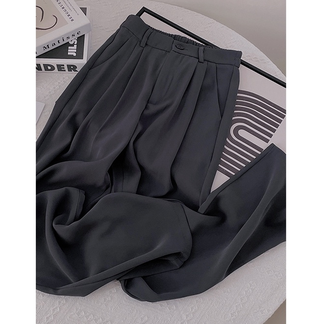 Detail abu abu highwaist loose celana kantor panjang wanita kekinian