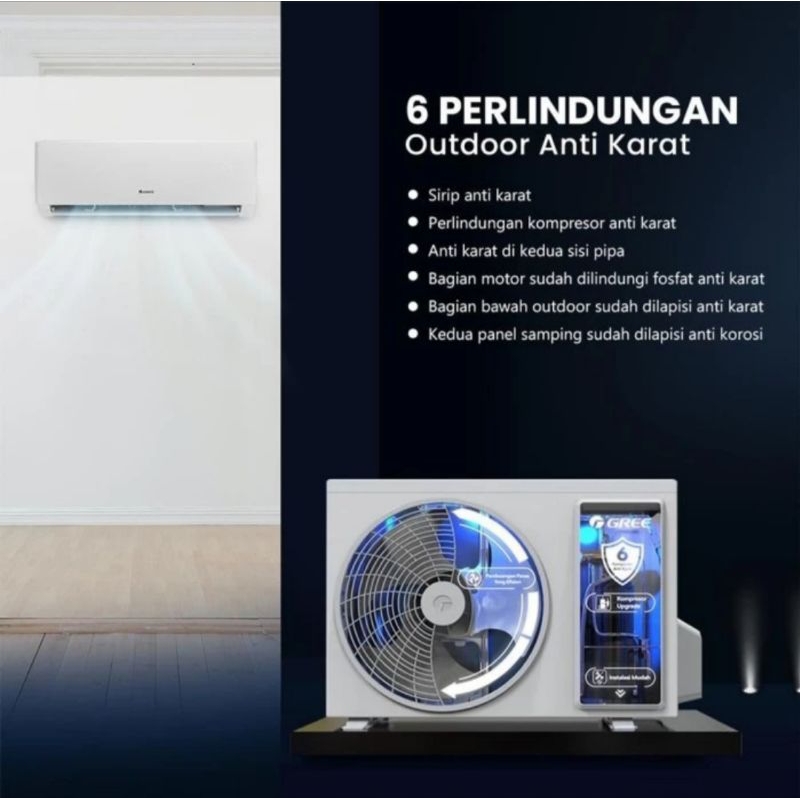 ( UNIT ONLY ) indoor AC outdoor AC remote + baterai kartu garansi + kartu petunjuk freon isi full dr pabrik AC masing2 bracket indoor Tidak ada garansi toko