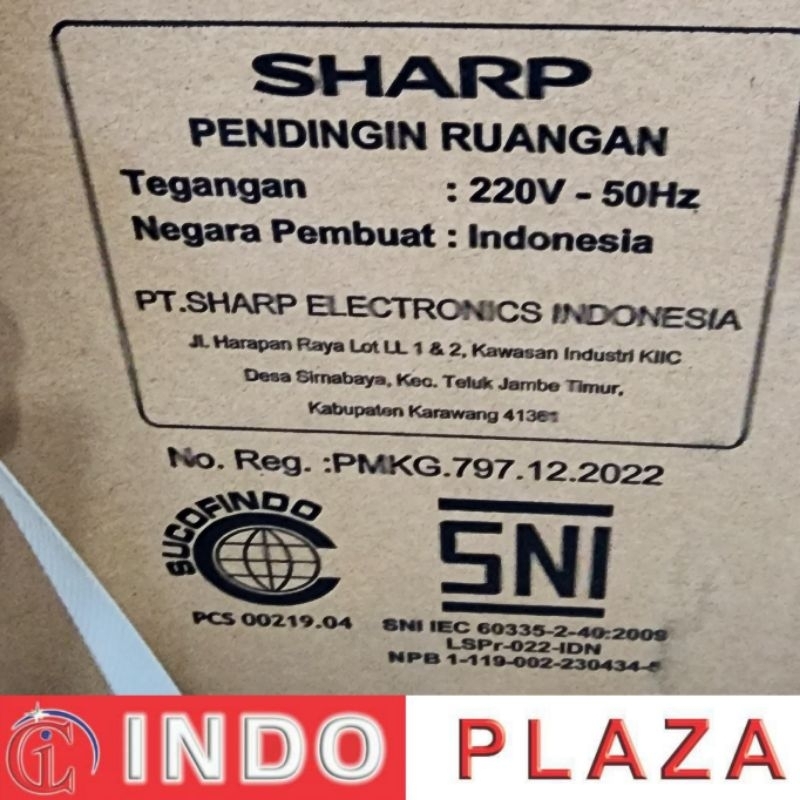 HALO Sobat INDO PLAZA... INGAT!! INDO PLAZA hanya menjual produk BARU 100% dan BERGARANSI RESMI. Garansi Resmi SHARP 3 Tahun sparepart 10 tahun kompresor