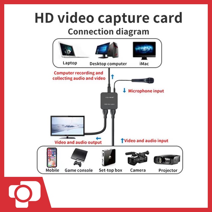 FITUR PRODUK : 【4K HDMI Game Capture Card】Record HD audio & video from external devices via HDMI port and can be synchronized to a larger screen by HDMI loop out port. It supports up to 4K HDMI signal loop out, let the device work instantly with stream media like OBS. Ideal for live streaming, gaming broadcast, video recording, conference rooms, etc