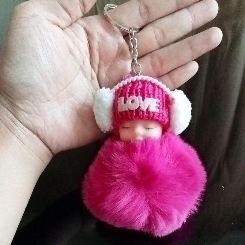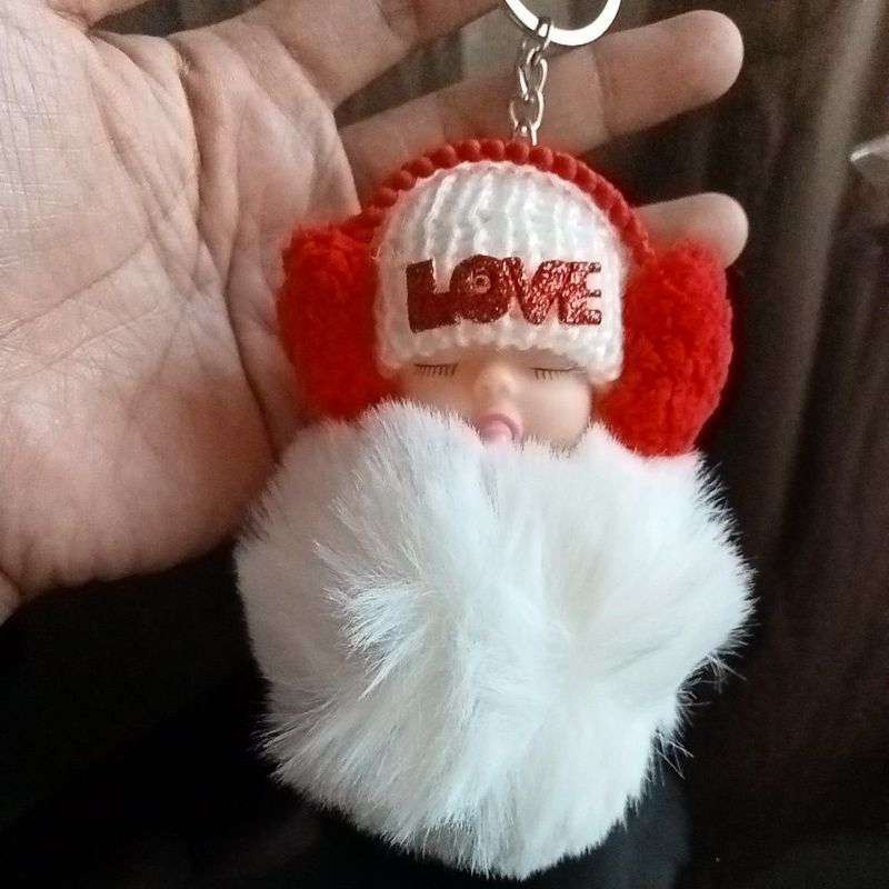 Gantungan kunci ini memiliki kepala bayi dan pompom yang halus. Sangat lucu dan menggemaskan. Cocok digunaan untuk digantung di tas, kunci, dll dan bisa juga untuk souvenir.