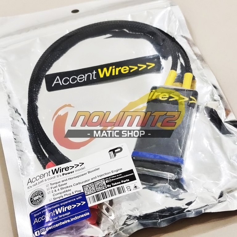 Fitur: Accent Wire E2 RS mampu meningkatkan respons mesin lebih cepat dan bertenaga. Pemasangan cukup sambungkan pada positif aki (+) warna merah dan minus (-) aki warna hitam.