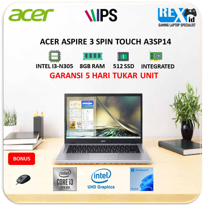 Detail ACER ASPIRE 3 SPIN TOUCH A3SP14 (i3 N305 8Ccore 8gb 512ssd W11+OHS 14.0inch WUXGA IPS 2IN1) ACER ASPIRE 3 SPIN TOUCH A3SP14 I3 N305 8CORE 8GB 512SSD W11+OHS 14.0WUXGA IPS 2IN1 GRY -31PT.37C1