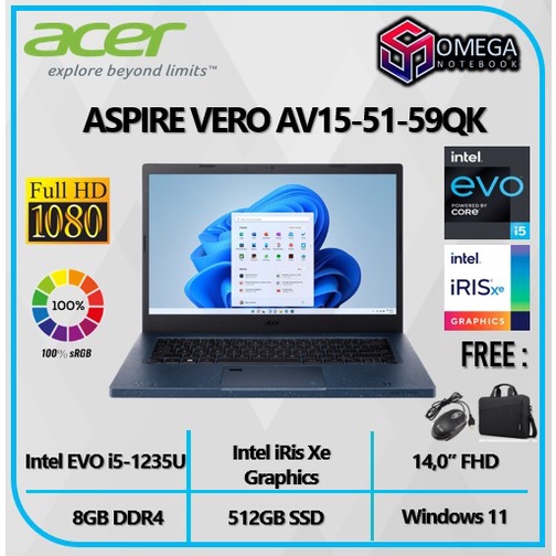 • CPU : Intel® Evo Core™ i5-1235U processor • Memory : 8GB LPDDR4X Dual Channel • Storage : 512 GB SSD NVMe Gen4 • LCD : 14.0" display with IPS (In-Plane Switching) technology, Full HD 1920 x 1080, high-brightness (300 nits) Acer ComfyView™ LED-backlit TFT LCD, 16:9 aspect ratio, color gamut sRGB 100% • Graphics : Intel Iris Xe Graphics (80 EU) • Bluetooth : Bluetooth 5.2 • Wifi : Intel® Wireless Wi-Fi 6E AX211 with MU-MIMO • Features : FHD Camera, Thunderbolt 4, Acer PurifiedVoice, VeroSense